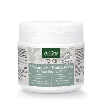 AniForte Afrikanische Teufelskralle beinhaltet gemahlene Teufelskrallenwurzel und kann so dazu beitragen, den gesamten Bewegungsapparat sowie die normale Gelenkfunktion Deines Lieblings auf natürliche Weise positiv zu unterstützen.