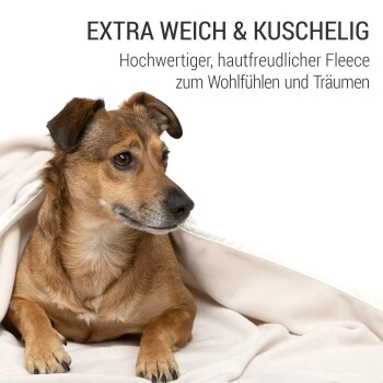 Ihren Hund verwöhnen Sie mit dieser kuscheligen Decke, die bei 95°C gewaschen werden kann und besonders weich und warm ist. Egal, ob als zusätzlicher Platz auf dem Lieblingsplatz oder auf dem Sofa – mit dieser Decke sorgen Sie für noch mehr Komfort für Ihren Hund. Wie alle Produkte von Doctor Bark, kann auch die Kuschel-Fleece-Decke bei 95°C gewaschen werden. Wir haben das weichste und hochwertigste Fleece für diese kuschelige Decke ausgewählt, damit Ihr Hund sich gemütlich ausruhen und schlafen kann. Die Decke ist farblich abgesetzt und mit einem Einfassband veredelt, was ihr einen hochwertigen Abschluss verleiht. Dank der verschiedenen Größen passt die Decke problemlos in eine 5 kg Waschmaschine. Größe: M: ca. 100 x 70 x 1 cm, L: ca. 120 x 90 x 1 cm, XL: ca. 140 x 100 x 1 cm.