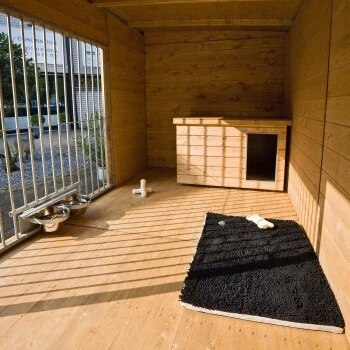 Der optionale Boden der Hundezwinger ist imprägniert. Der Zwinger sollte dennoch auf Gehwegplatten, Pflastersteinen, Kies oder Schotter gestellt werden. Gehwegplatten und Pflastersteine können als Punkt- oder Streifenfundament verlegt werden, d. h. nicht über die gesamte Fläche, sondern nur an den relevanten Stellen.