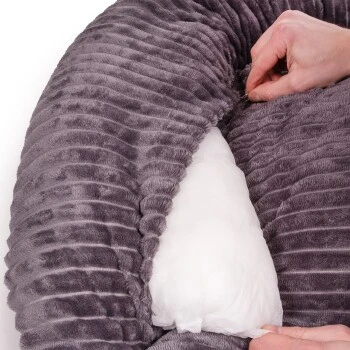 Gemütlich und schön – so präsentiert sich das erstklassige Hundebett CORDO, hergestellt nach altbritischer Handwerkstradition. Die überwiegend ovale Form, der kuschelige, erhöhte Rand und die bequeme, weiche und vor allem üppige Polsterung ermöglichen ein luxuriöses Schlafvergnügen. Der moderne, schon fast samtartige Breitcordstoff in gedecktem Grau, sieht nicht nur edel aus, sondern fühlt sich auch angenehm weich an. Das elegante Wallace & Jones Logo rundet das formschöne Design ab. Und wenn der Liebling mal etwas schwungvoller in sein Sofa springt, hemmen kleine Gumminoppen an der Unterseite ein Verrutschen des Liegebetts.
