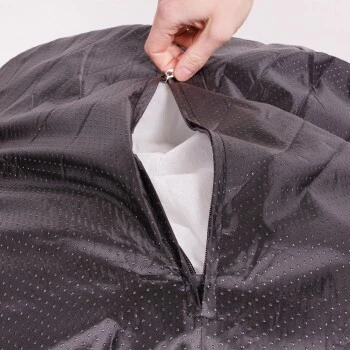 Bei Verschmutzungen kann der Bezug per Reißverschluss komplett abgenommen und bei 30 °C gewaschen werden. Hinweis: Bitte vor dem Waschen den Reißverschluss schließen.
