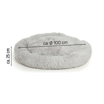 Ihr Hund findet hier ein gemütliches und gut gepolstertes Bett – der neue Lieblingsplatz in Ihrem Zuhause. Dank seiner runden Form ist dieses hochwertige Haustierbett ideal für Vierbeiner die es lieben, sich zusammenzurollen und einzukuscheln. Der erhöhte Rand schafft dabei ein Gefühl der Sicherheit. Der Boden mit Anti-Rutsch-Noppen sorgt für festen Bodenhalt und optimale Sicherheit. Das Kuschelkissen ist leicht und tragbar auch für unterwegs. Das Bett kann problemlos per Handwäsche gereinigt werden.